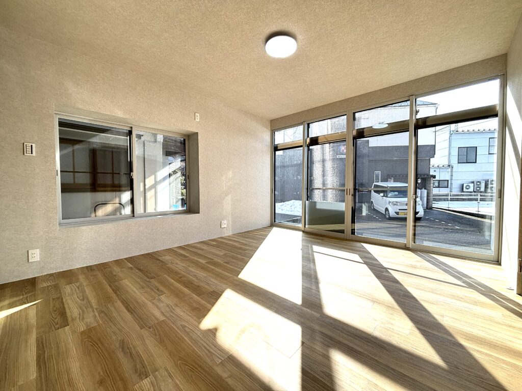 ゆとりある5LDKの間取りは、ファミリーはもちろん、二世帯や在宅ワークスペースを確保したい方にもおすすめの一邸です。 書斎スペースも設けており、テレワークや趣味の時間にも最適。 落ち着いて過ごせるプライベート空間としても活用いただけます。 LDKは開放感のある空間に仕上げ、家族が自然と集まる住まいに。 各居室もゆとりを持って確保されており、それぞれの時間も大切にできます。 また、南向きのため、日当たりも良好。 明るく快適な暮らしを実現します。 さらに、居室の全窓に二重サッシを採用し、断熱性・防音性にも配慮。 一年を通して快適にお過ごしいただけます。 後づけのサンルームもあり、天候を気にせず洗濯物を干せるのも嬉しいポイントです。 水回り(キッチン・浴室・洗面・トイレ)はすべて新品に交換済み。 気持ちよく新生活をスタートしていただけます。 立地・広さ・設備のバランスが取れた、完成度の高いリノベーション住宅となっております。